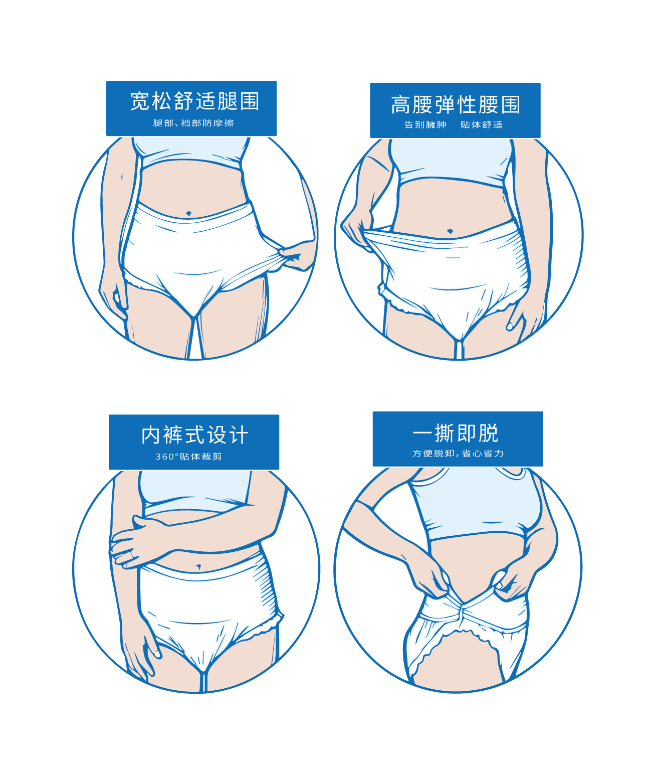 内裤式设计:360° 贴身裁剪,像普通内裤一样贴合身形,穿脱自然无压力;